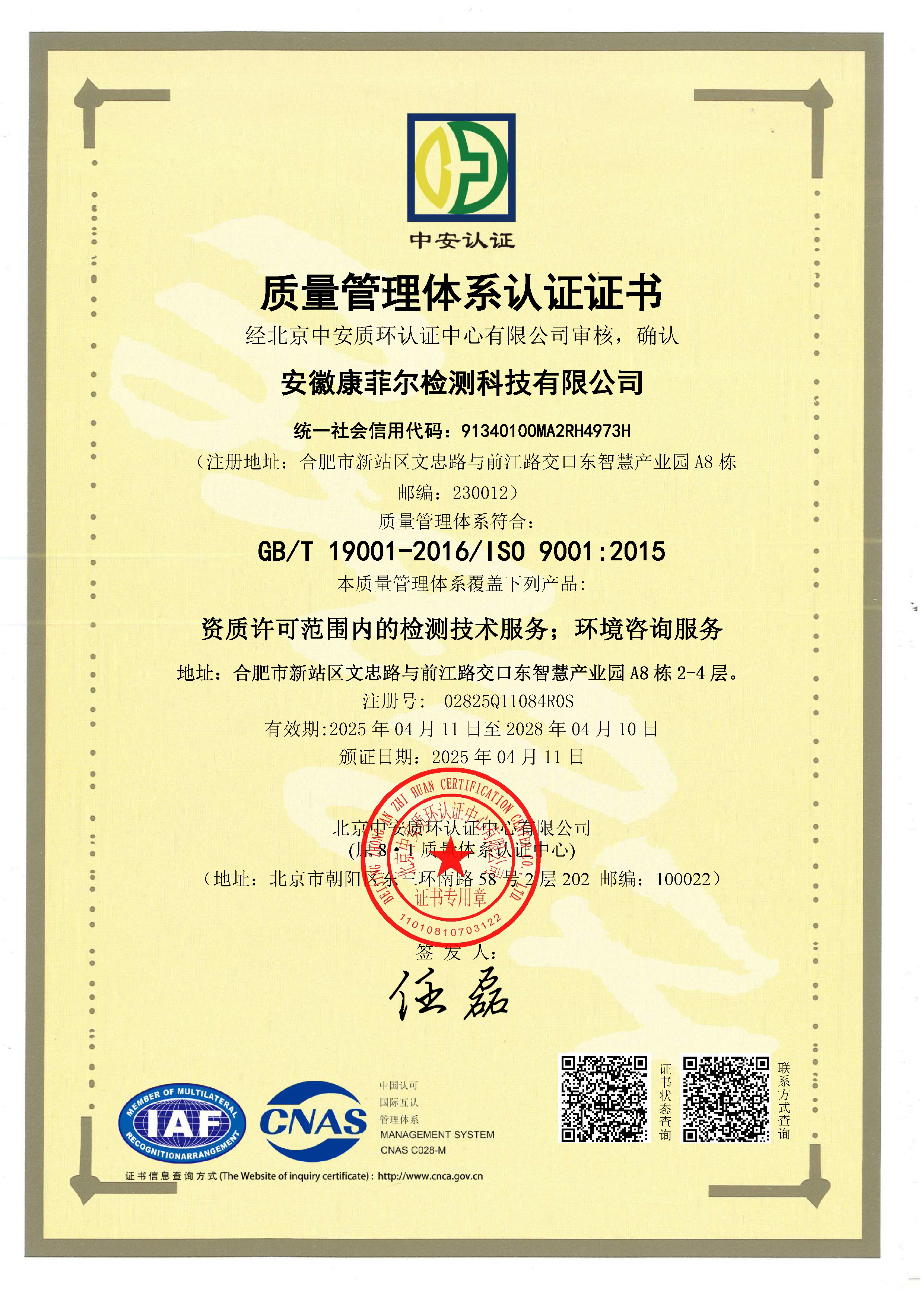 質量管理體系認證證書